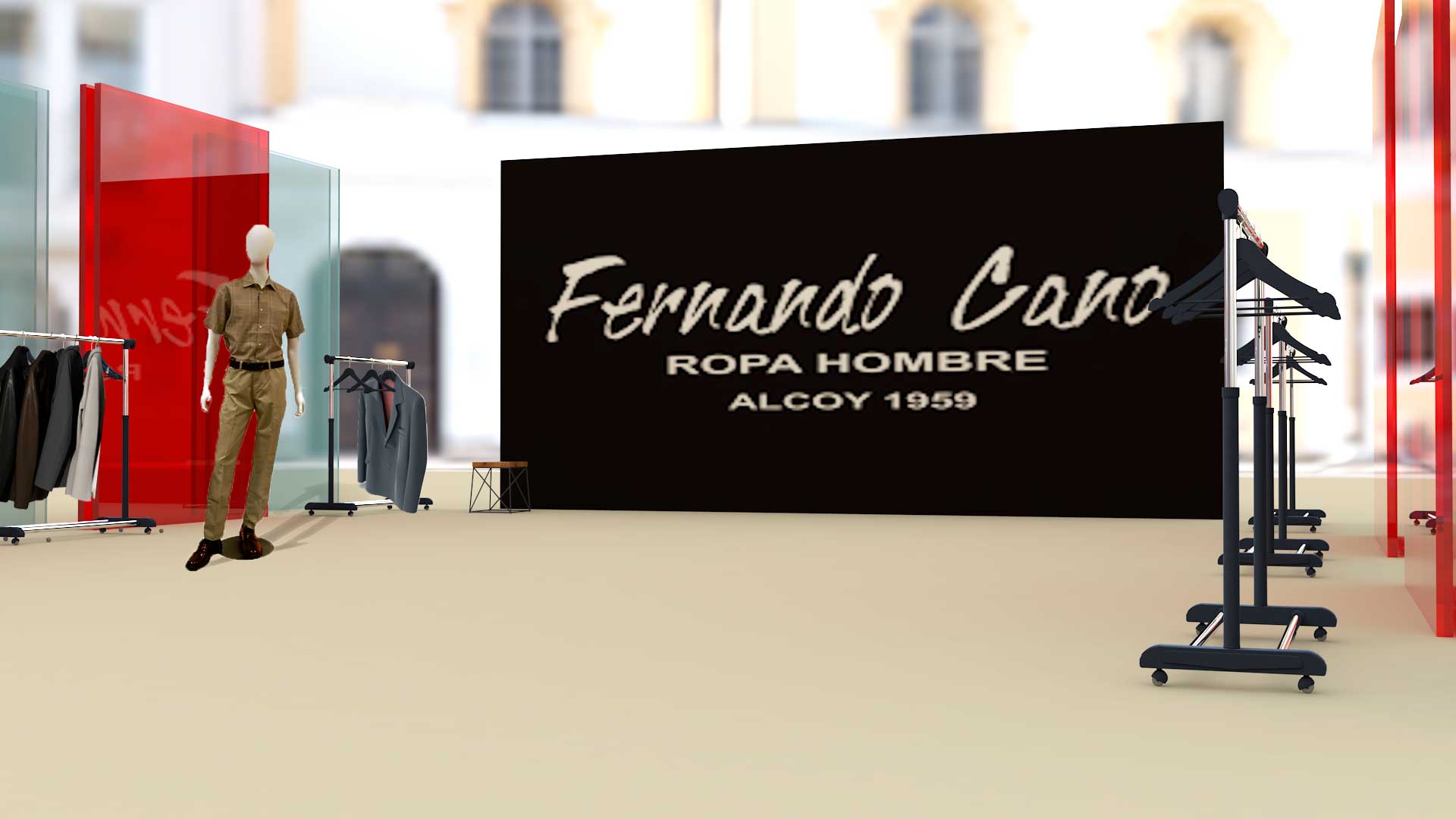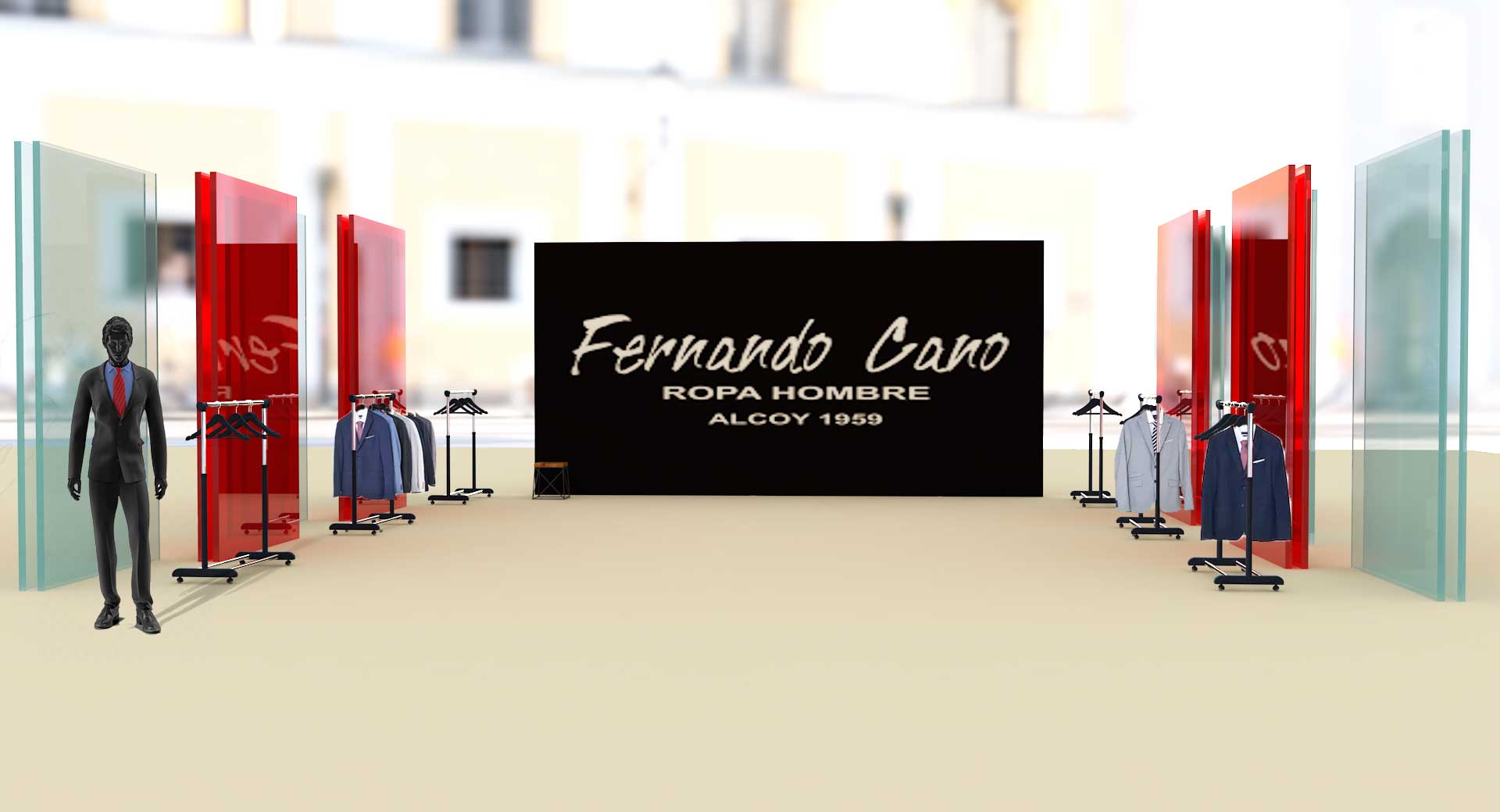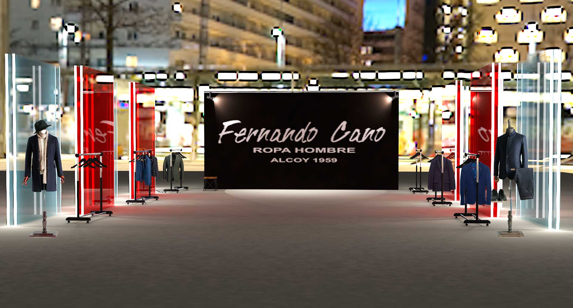 Este proyecto es una pequeña intervención efímera, que consiste en la realización de un estand para la marca de ropa de hombre Fernando Cano.